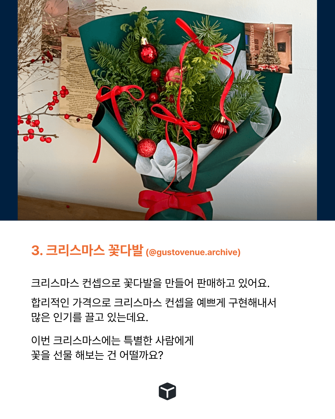 크리스마스는 “뭔가 전하고 싶어지는 날”이라는 점에서 꽃과 감정적으로 아주 잘 맞는 시즌이었고요.